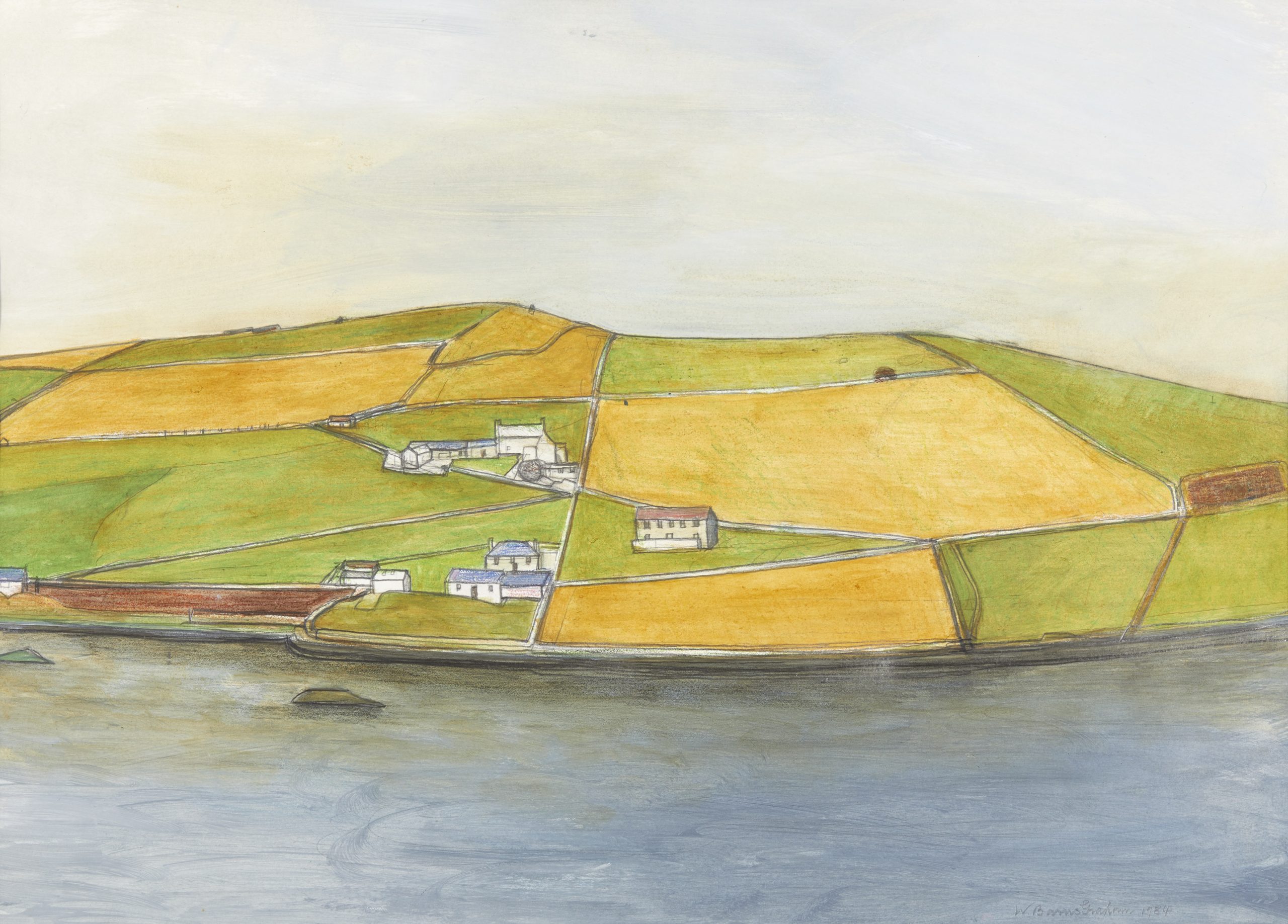 On her second visit to Orkney, Barns-Graham struggled against the bad Orcadian weather and ill health. Instead of traveling around the island, she instead dedicated much of her time to drawing and working on her Orcadian series of collages.