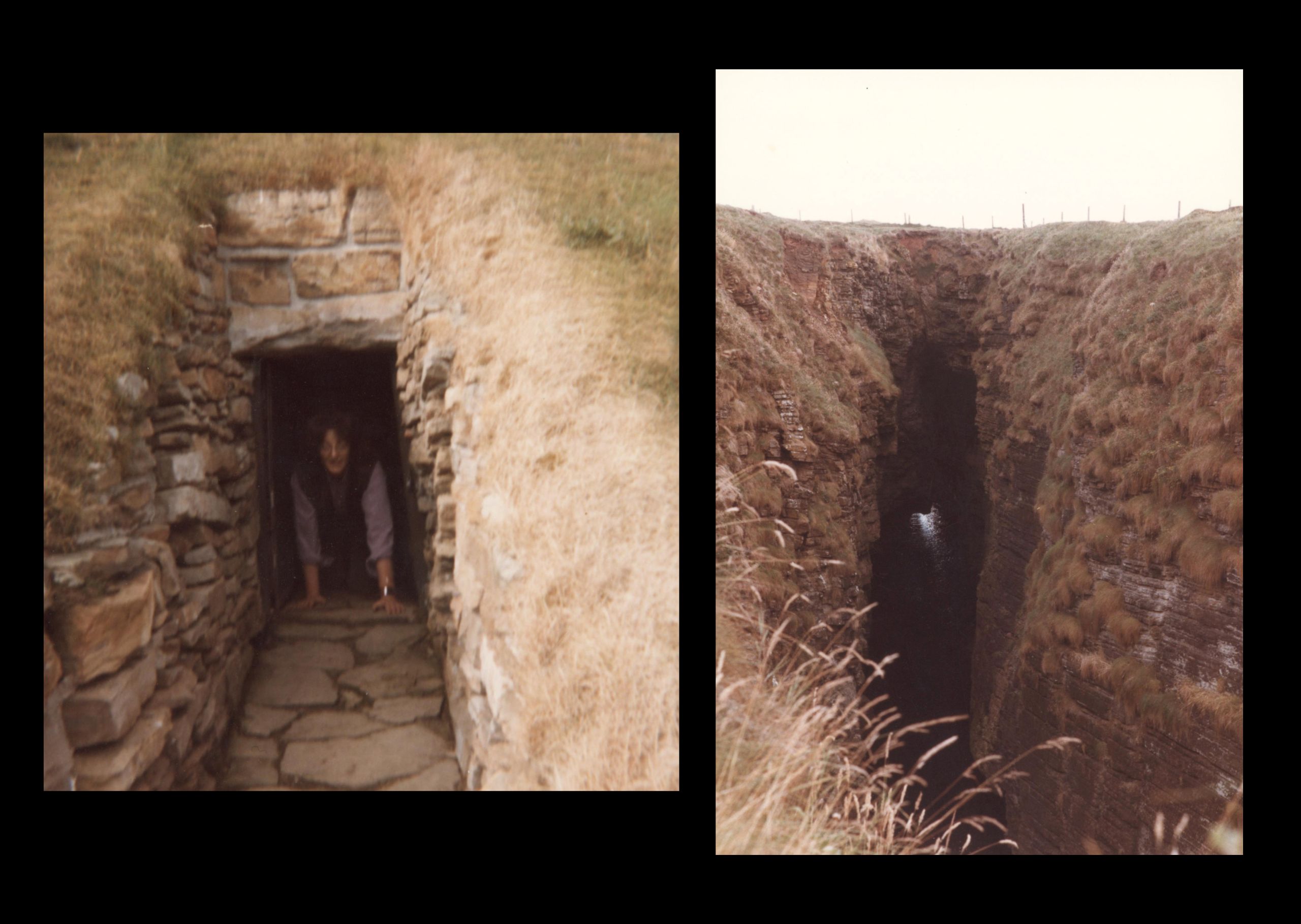 Images: (Above) Rowan James in chanbered cairn, BGP/1/9/58, and “The Gloup”, BGP/1/9/128.