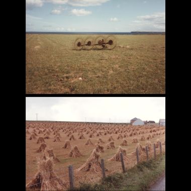 (Right) Farming machinery, BGP/1/9/80 and a field of stooks, BGP/1/9/125
